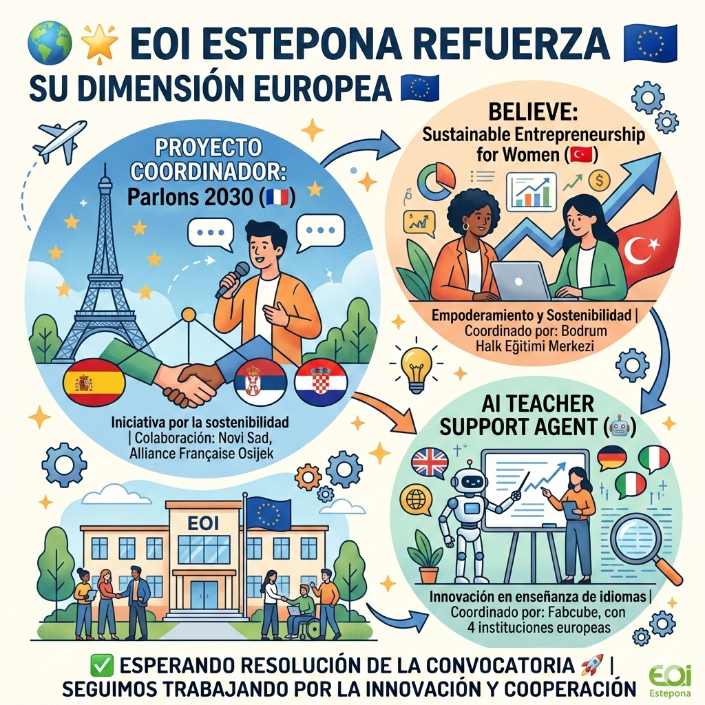 En la EOI Estepona queremos aprovechar esta fecha tan especial para recordar que el cariño no entiende de fronteras 💬❤️.Gracias a nuestros socios Erasmus+ europeos, hoy decimos “Te quiero” en muchos idiomas distintos, pero con un mismo significado: unión, respeto y cultura compartida. 🇫🇷 Je t’aime🇮🇹 […]
